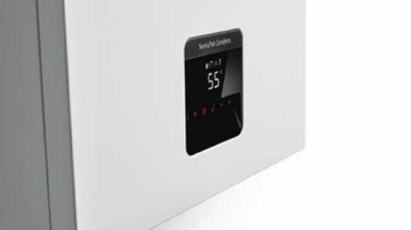 - Il nuovo design di SemiaTek Condens propone un’innovativa interfaccia touch screen di estrema semplicità con 6 tasti, display con sfondo nero e 2 digit in bianco ad accensione intermittente, l’indicazione dello stato della caldaia è definito dall’accensione ad intermittenza dell’icona selezionata.