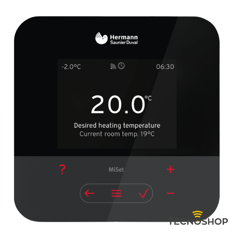 Un’interfaccia di design e touch MiSet è un moderno termostato del marchio Hermann Saunier Duval. Dal design innovativo e touch, è realizzato con materiali di qualità, e dispone di un pannello LCD retroilluminato. La sua interfaccia intuitiva offre 6 pulsanti sensibili al tocco dell’utente. MiSet ha un assistente alla programmazione e ti supporta nella definizione dei tuoi orari. Progettato per semplificare la vita quotidiana, basta rispondere a poche semplici domande, MiSet si occupa del resto! Bastano quindi due minuti per programmare il riscaldamento! Sono disponibili fino a 12 fasce orarie.