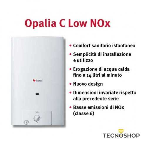 Gli scaldabagni a gas della gamma Opalia C sono compatti, facili da utilizzare e affidabili. Il modello Opalia C è disponibile nelle versioni a camera aperta da 11 o da 14 litri, tutte dotate di accensione elettronica a batteria con blocco di sicurezza in caso di mancanza di fiamma.