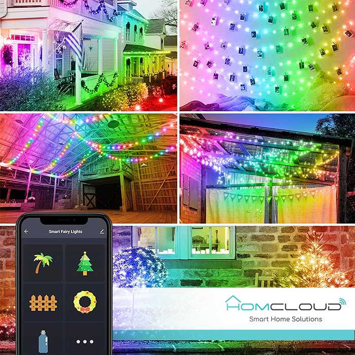 Lunghezza 10 metri + 2 metri di cavo / Sincro con musica / 1 LED ogni 15 cm / Da esterno / Compatibile con Amazon Alexa e Google Home.