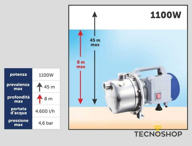 Elettropompa da 1100W con corpo in acciaio inox e attacco filettato 1″ F.