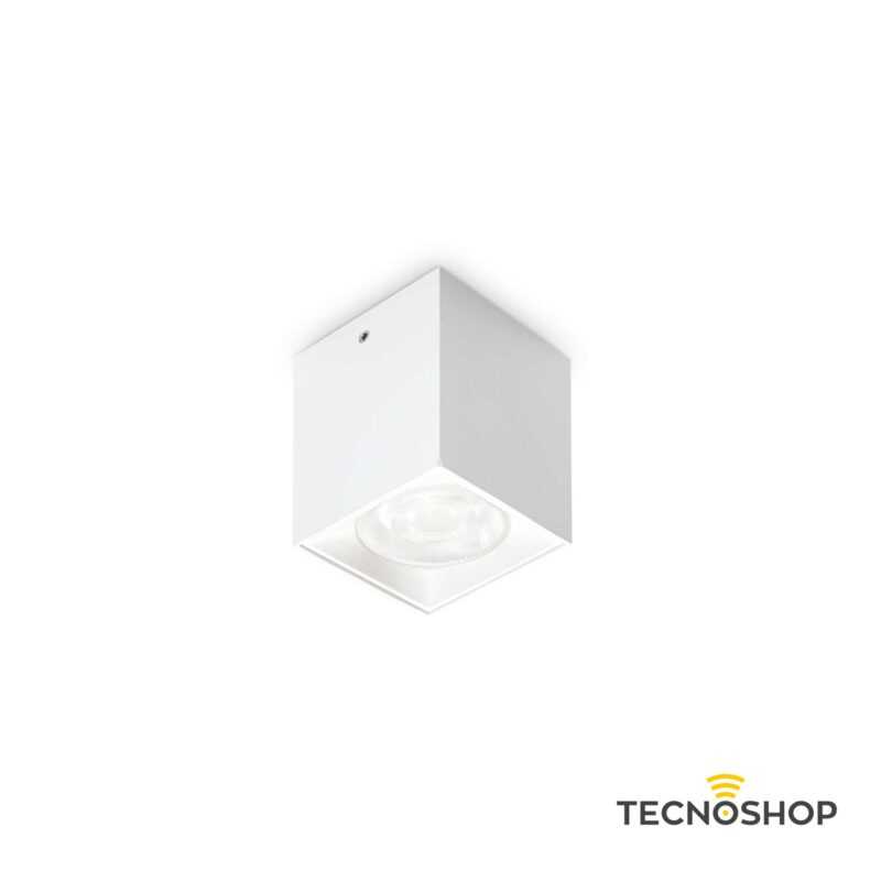 Plafone modello DOT base e corpo luce e ghiera in alluminio verniciato a polveri. Diffusore in acrilico trasparente satinato. Apparecchio per installazione in superficie. Finitura: bianco opaco.