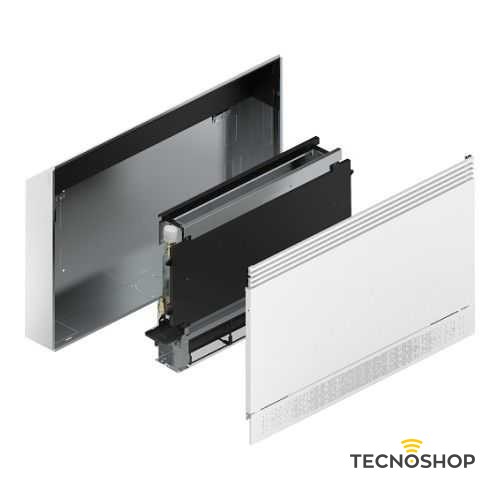 Il pannello รจ predisposto per il perfetto accoppiamento con la cassaforma ad incasso della medesima grandezza. Composto da un pannello anteriore, da una griglia removibile per la pulizia dei filtri dellโaria e da un rasomuro. La parte centrale del pannello รจ facilmente asportabile per una rapida e completa manutenzione degli apparecchi. Le finiture estetiche sono di alto livello per una perfetta integrazione negli ambienti. Il colore standard รจ il bianco RAL 9003.