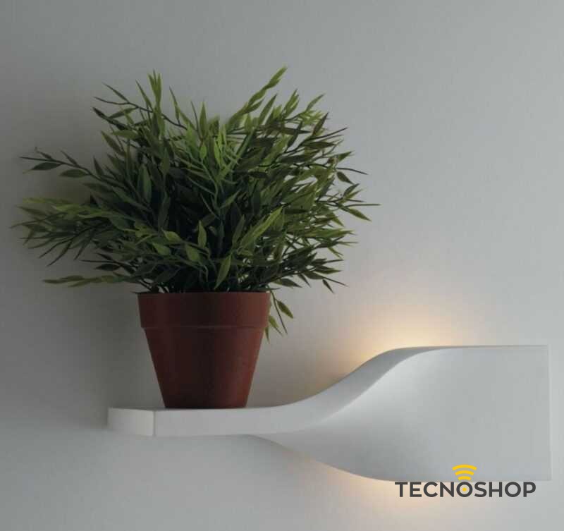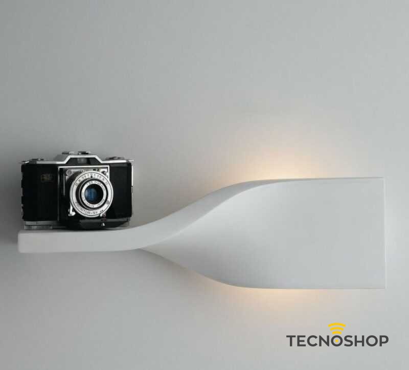 PIROETTE é una lampada da parete composta da una lastra in gesso dal profilo ondulato. Doppia emissione di luce verso l’alto e verso il basso. La parte che va fissata a parete funge da mensola per riporci sopra oggetti come un vaso o qualsiasi altro piccolo elemento decorativo. Dotata di 1 portalampada R7s.