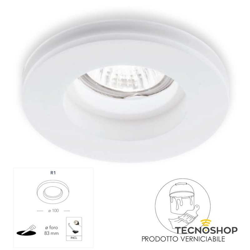 Il faretto in gesso per controsoffitto INC-PHANTOM-R1 è un portafaretto da incasso rotondo con struttura a scomparsa in gesso bianco verniciabile e progettato per controsoffitti in cartongesso. Il foro di 8,3cm, è predisposto per l’alloggio di una lampada dicroica con attacco GU10. La sostituibilià della lampada rende questo portafaretto di facile manutenzione da parte dell’utente.
