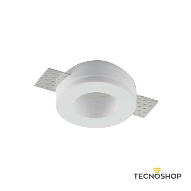 Faretto da incasso in gesso verniciabile da integrare nel cartongesso per dare omogeneità tra soffitto e corpo illuminante.