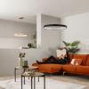 Sospensione LED Nike nera in metallo dal design moderno, potenza 58W e luminosità di 8470 lm. Dotata di tecnologia DIP-CCT con temperatura colore regolabile 2700K / 3200K / 4000K, consente di personalizzare l’atmosfera luminosa. Dimensioni Ø69,5 x H150 cm, ideale per ambienti eleganti e contemporanei. Finiture disponibili: BIANCO OPACO – ORO OPACO.