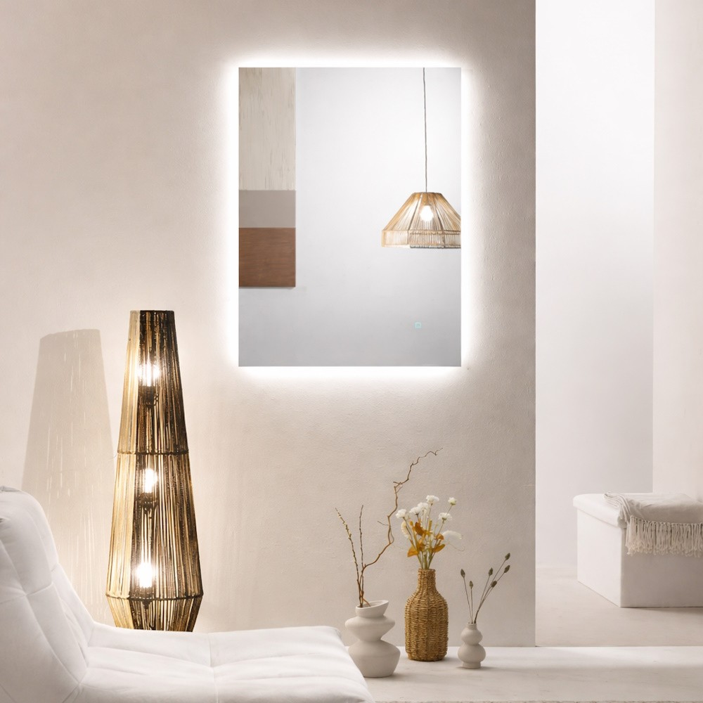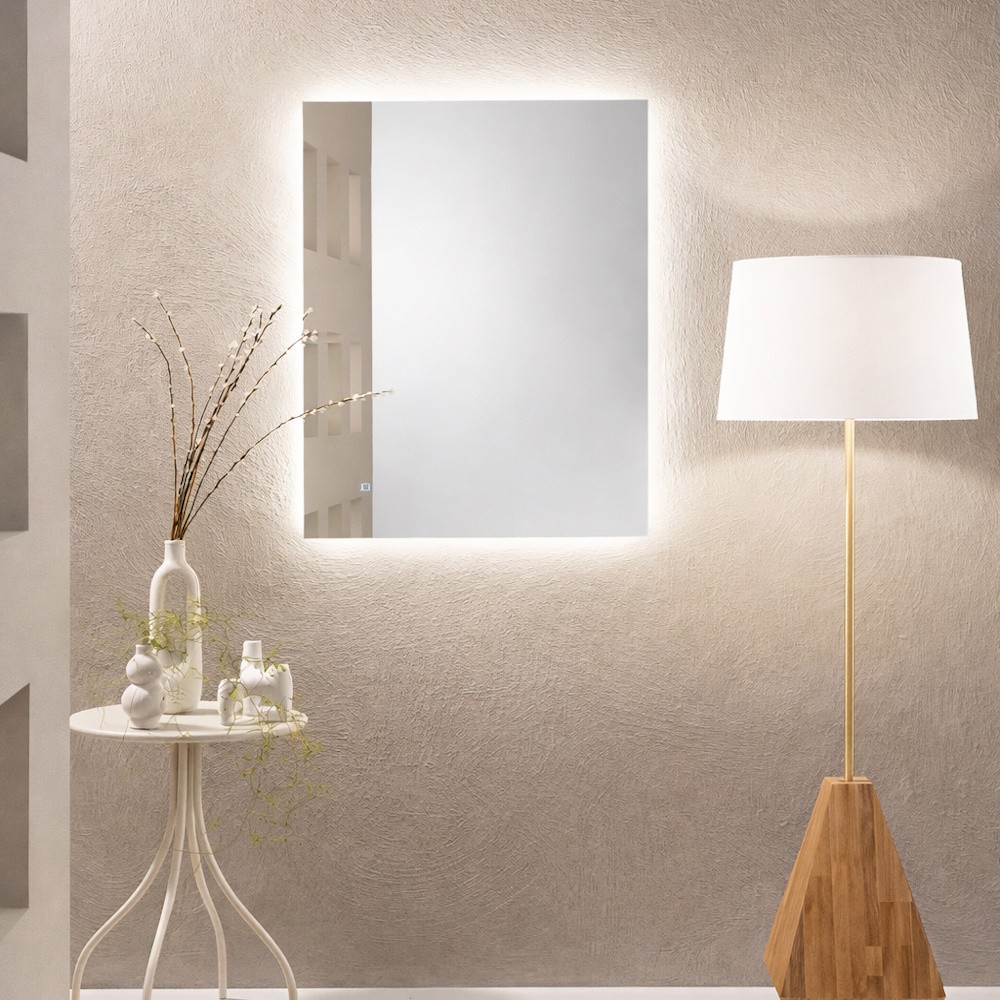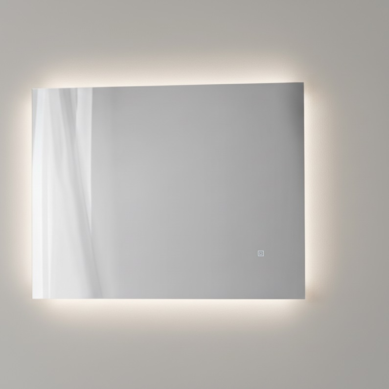 Specchio LED Halo con retroilluminazione integrata, dal design moderno ed essenziale, ideale per ambienti bagno e spazi contemporanei. Dotato di sistema touch con regolazione dell’intensità luminosa, funzione dimmer e memoria (Memory Function) per mantenere le impostazioni preferite.