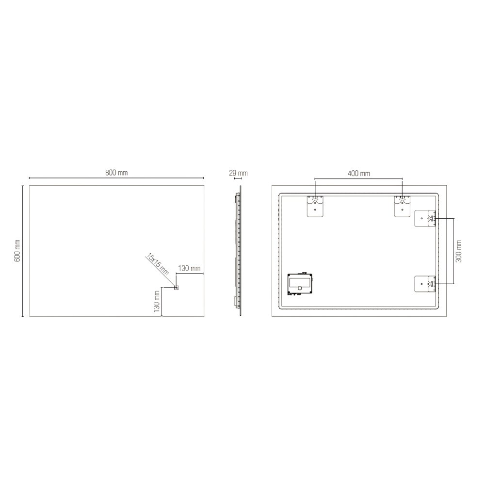 Installabile sia in verticale che in orizzontale, offre massima versatilità progettuale. Realizzato con specchio da 4 mm argento senza rame, telaio in PC e pellicola antideflagrante sul retro per garantire sicurezza e durata nel tempo. Grado di protezione IP44, adatto anche ad ambienti umidi come il bagno.