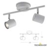 Faretto a spot orientabile bianco a doppia luce con possibilità di collocare il fascio di luce nella direzione ideale per creare la giusta illuminazione in ogni tipo di ambiente. I faretti a spot possono essere montati sia a parete che a soffitto.