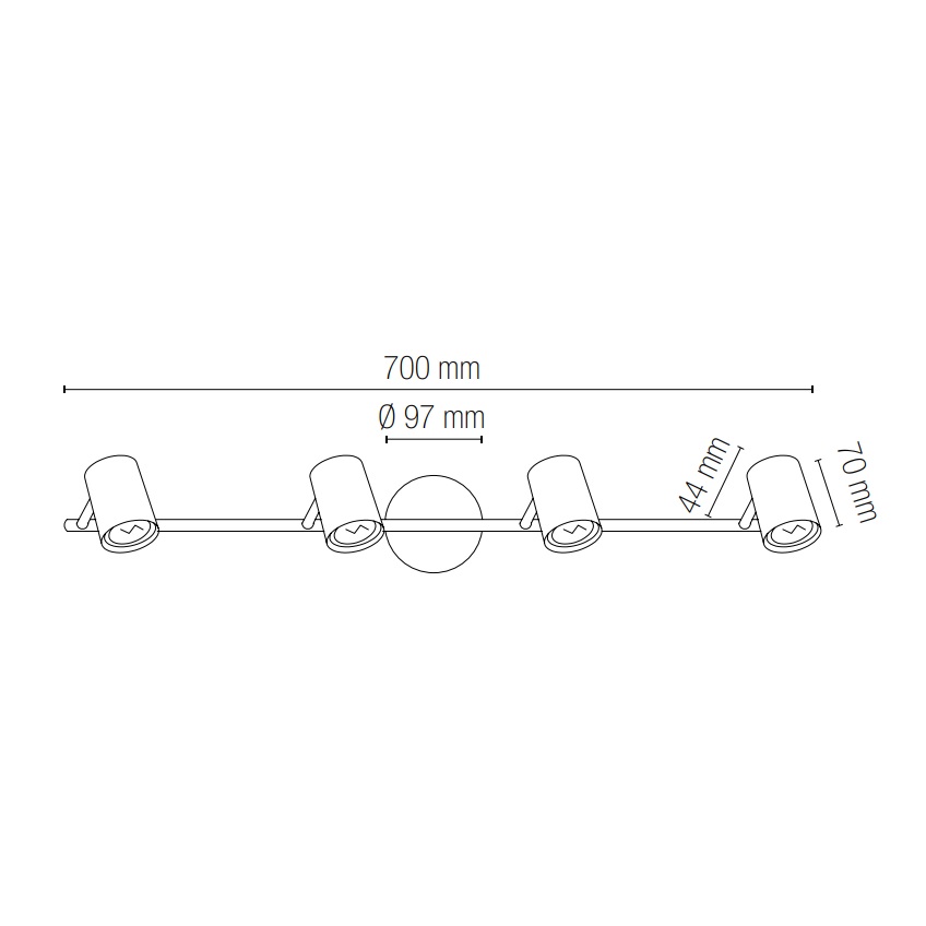 Spot in metallo con punti luce orientabili, disponibili nelle versioni Nero o bianco opaco. Forme modulari disponibili: singolo, doppio su staffa lineare, triplo con base rotonda, quadruplo su staffa lineare.