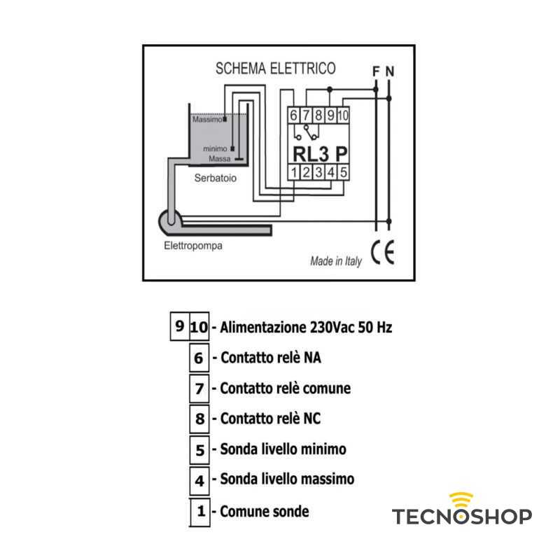 *N.B. Il tempo di ripristino diventa attivo dal momento in cui la RL3 P verifica che la sonda di minimo è immersa