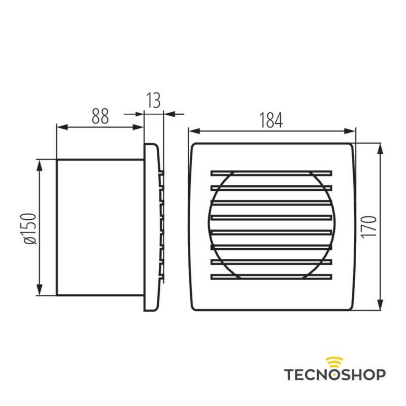 Kanlux Cyklon EOL150B Aspiratore da canale. Questo aspiratore da canale è realizzato in materiale plastico di colore bianco con griglia frontale removibile. Potenza di 22W e ventola da 7 pale in grado di arrivare a 2550 giri/min, producendo una rumorosità contenuta a 38dB. Ha un rendimento tale da permettere di aspirare un volume di 200 metri cubi di aria all’ora. Utilizzabile per tubazioni rigide o flessibili di diametro 150mm, ad uso interno. Grazie al grado di protezione IPX4 è in grado di resistere tranquillamente in ambienti umidi. Installabile a filo muro, perfetto per ambienti domestici come ad esempio il bagno.