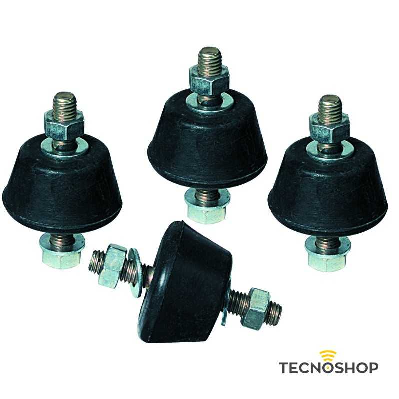 Kit di antivibranti per mensole realizzati in gomma naturale vulcanizzata con inserti metallici filettati M8.