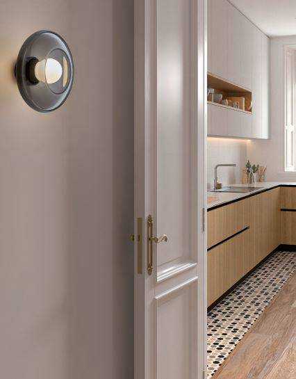 La lampada da parete Trip di Leds è una soluzione unica per l’illuminazione della vostra, con il paralume rotondo in vetro color bronzo completerà perfettamente molti interni moderni.