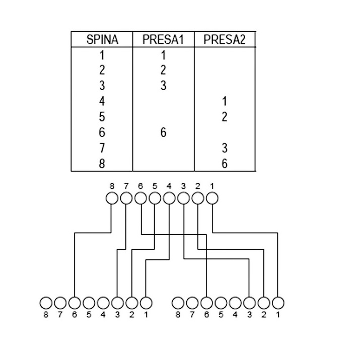 Adattatore plug RJ45 sdoppiatore 2 ethernet.