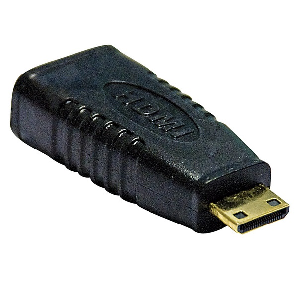 Adattatore HDMI Mini (tipo C) maschio a HDMI standard (tipo A) femmina, con contatti dorati per una migliore trasmissione del segnale.