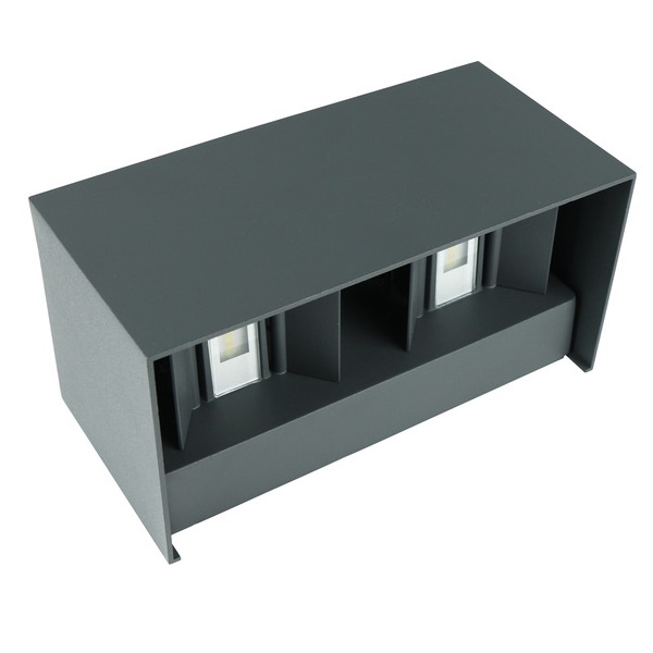 Applique da parete dal design moderno a forma di cubo, ideale per illuminazione interna ed esterna grazie al grado di protezione IP65. Realizzato in alluminio grigio, funziona a 220Vac con potenza 20W e flusso luminoso di 1400 lumen.