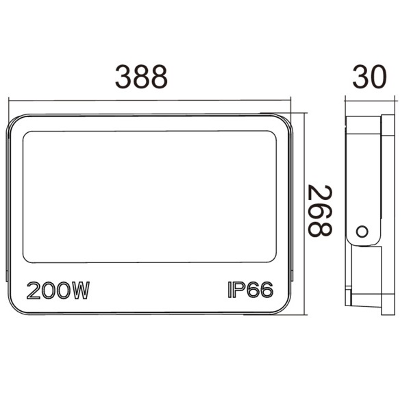 Funziona a 220-240V, offre una resa cromatica CRI80 e un design sottile (388×268×30 mm), facilitando installazione e integrazione in contesti industriali, commerciali e grandi aree esterne.