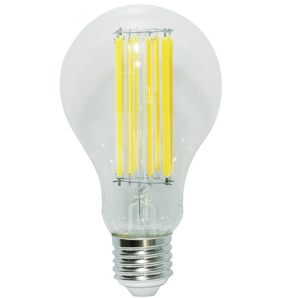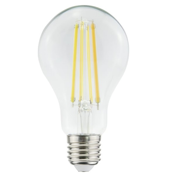 Lampada LED a goccia A70 della serie filament con finitura trasparente, ideale per applicazioni decorative e illuminazione generale. Dotata di attacco E27 e potenza di 18W, emette un flusso luminoso di 2452 lumen con temperatura colore 4000K, garantendo una luce naturale, brillante e funzionale.