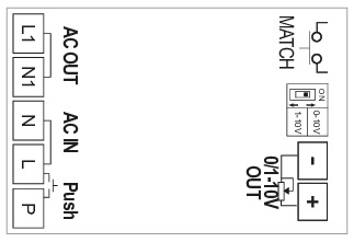 | Tipologia | Modulo Dimmer 0/1-10V 1CH con pulsante cablato + RF, + ON/OFF Relè (Distanza 30m RF) 100-240V |