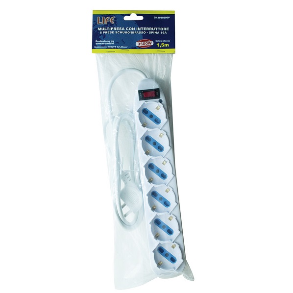 LIFE MULTIPRESA CON 6 PRESE 3500W CON INTERRUTTORE E CAVO 1.5mt