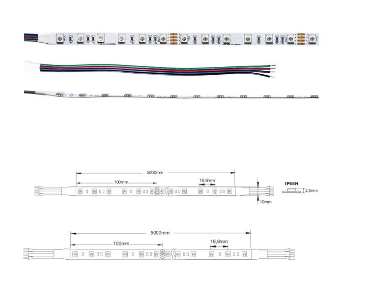 La Striscia LED RGB 60 LED/m SMD 5050 è pensata per creare ambienti luminosi e colorati con semplicità. Grazie alla combinazione dei tre canali RGB, consente di ottenere una vasta gamma di colori e effetti decorativi, ideale per progetti residenziali e commerciali.