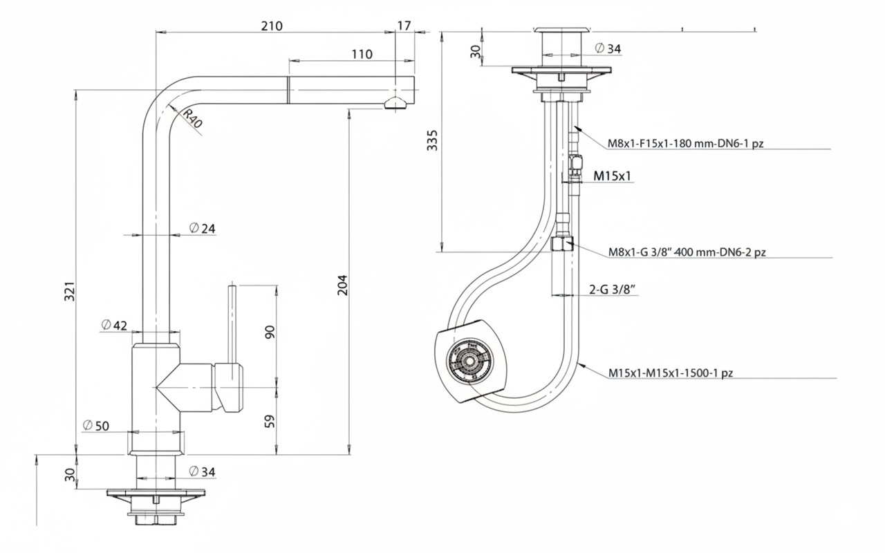 Miscelatore Mamoli M4 per lavello cucina, monocomando, con doccetta estraibile per maggiore praticità e flessibilità durante il lavaggio.
