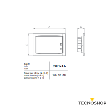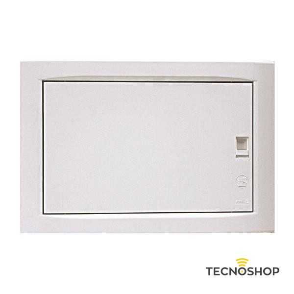 Centralino incasso per cartongesso a 12 posti, realizzato in tecnopolimeri termoresistenti ad elevate prestazioni con frontale e portello in ABS bianco Ral 9010. Protezione IP40.