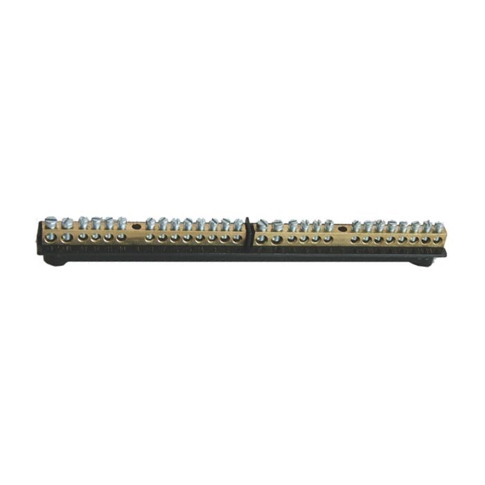 Morsettiera modulare per impianti elettrici, progettata per la distribuzione ordinata e sicura dei collegamenti di terra e neutro. Il modello offre 2 file da 12 morsetti ciascuna, più 2 poli aggiuntivi, garantendo una gestione efficace dei conduttori all’interno dei quadri elettrici. Realizzata in materiale isolante ad alta resistenza, assicura affidabilità, protezione e facilità di cablaggio.
