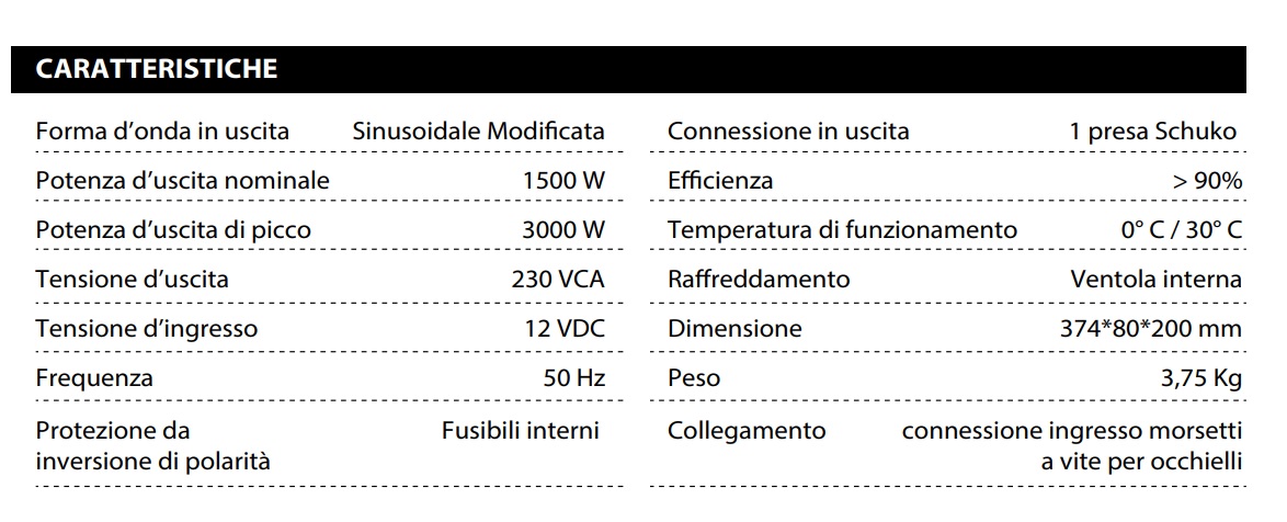- Potenza continua: 1500W