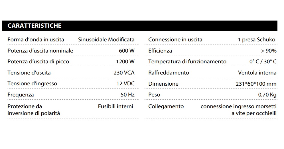 Affidabile e versatile, questo inverter è ideale per alimentare dispositivi elettronici in mobilità o in impianti off-grid.