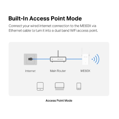Offre modalità extender o punto di accesso, beamforming, MU-MIMO, controllo accessi, pianificazione alimentazione e controllo LED. Compatibile con qualsiasi router e con tecnologia EasyMesh per creare reti mesh senza interruzioni.