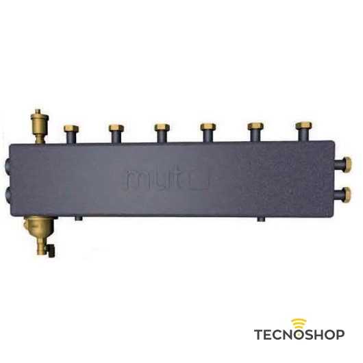 I collettori MUT sono dispositivi atti al collegamento fra un generatore di calore o un chiller e Gruppi multipli di Rilancio ( detti anche di alimentazione, regolazione o circolazione) del fluido termovettore negli impianti di climatizzazione. Nella versione con Separatore e Defangatore, oltre a distribuire il fluido termovettore nei diversi Gruppi di Rilancio, assume anche una funzione di separatore idraulico e di defangatore, accogliendo lo sporco che si forma all’interno dell’impianto di riscaldamento/raffrescamento e trattenendo eventuali particelle metalliche tramite una cartuccia magnetica.