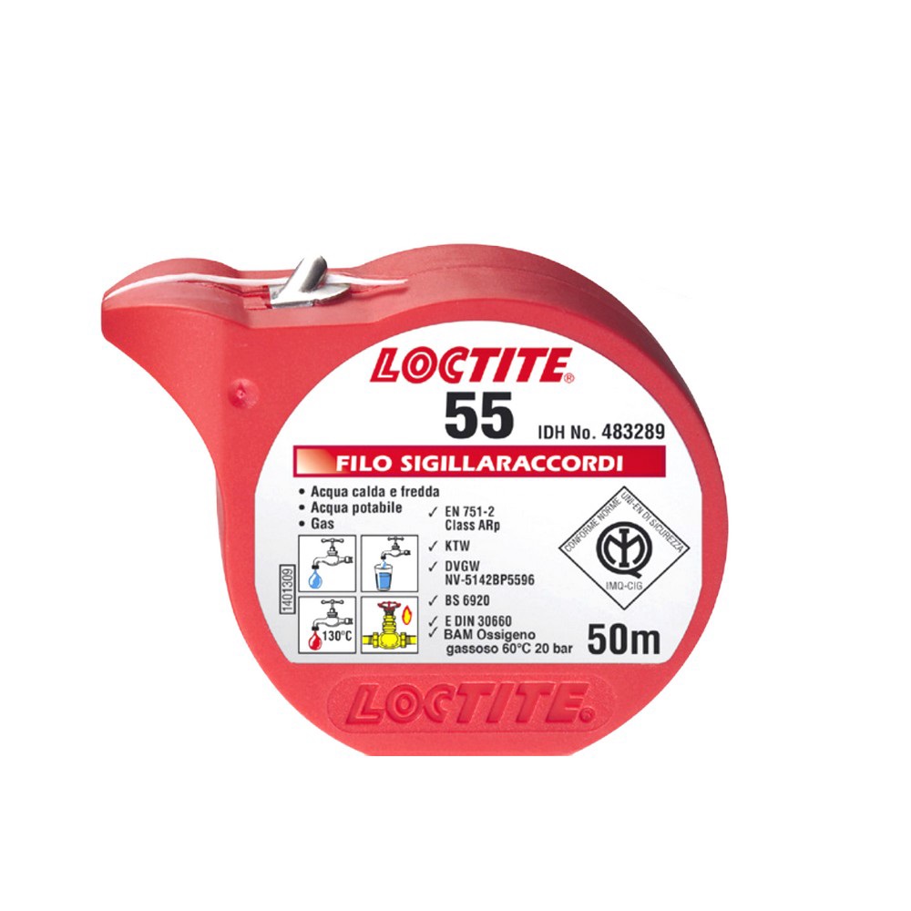 Questo prodotto è ideale per sigillare tubazioni per acqua, gas da riscaldamento, ossigeno e la maggior parte degli oli industriali. Consigliato per sigillare filettature coniche in plastica o metallo. LOCTITE 55 consente il riposizionamento per allineare le tubazioni.