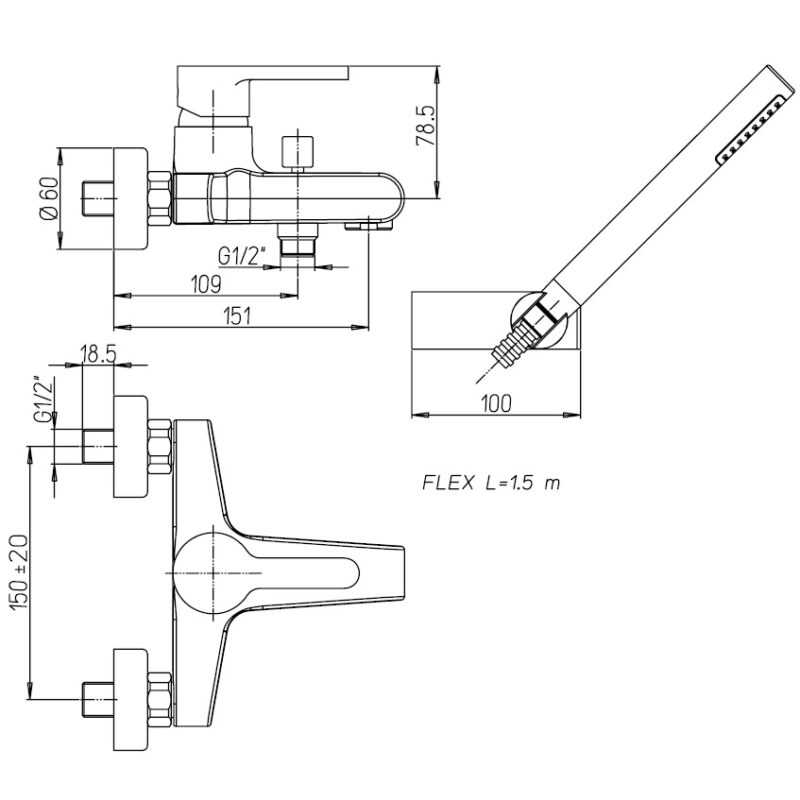 - Lunghezza flex: 150 cm