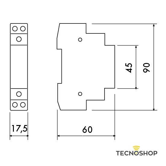 - Dimensioni (LxPxH) 17.5 x 60 x 90 mm
