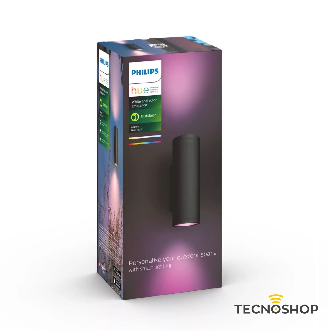 La lampada da parete Appear offre 16 milioni di colori; un sottile design ma allo stesso tempo potente, grazie alla direzione del suo fascio sia verso l’alto che verso il basso e alla creazione di un triangolo di luce definito e diretto contro la parete.