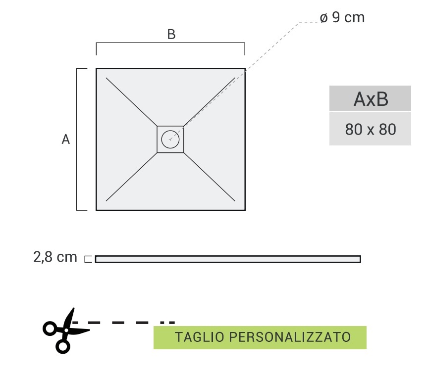 Piatto doccia quadrato in marmoresina modello Stone Free H.2,8, dimensione 80×80 cm, realizzato in materiale composito di resina e cariche minerali con rivestimento in gelcoat. Questa combinazione garantisce elevata resistenza agli urti, all’usura e agli agenti chimici, oltre a una superficie durevole e di facile manutenzione.