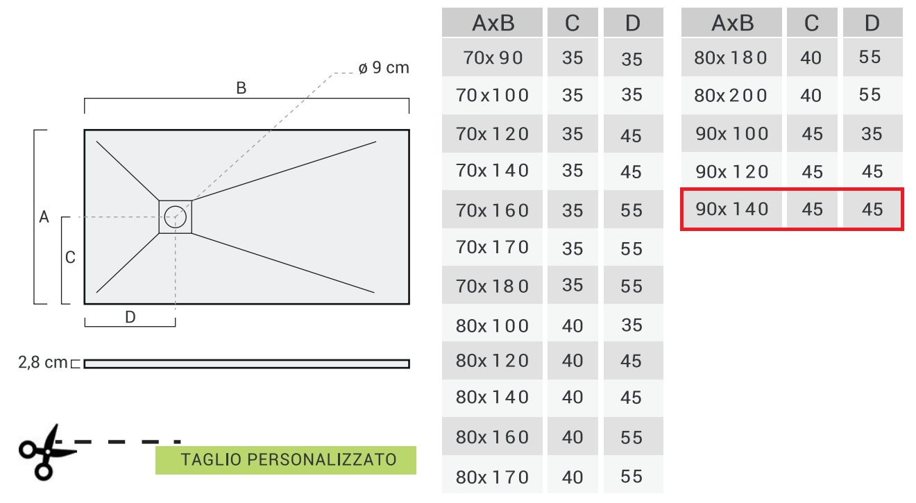 Completo di griglia in alluminio, ha un’altezza di 2,8 cm ed è compatibile con sifone PDR, rappresentando una soluzione pratica, elegante e funzionale per la zona doccia.