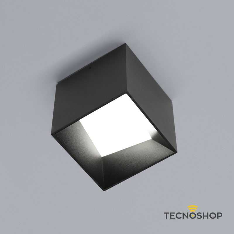 Plafone da soffitto in alluminio verniciato nero, con led integrato luce calda (3000K). Adatto ad ambienti con presenza di umidità (IP65)