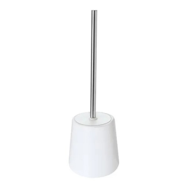 Porta scopino WC da appoggio modello Sidney, realizzato completamente in ceramica con manico in acciaio cromato. Dotato di scopino con ciuffo in setole, garantisce praticità ed efficacia nella pulizia quotidiana.