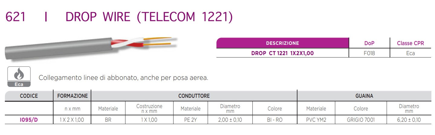 Prospecta I095/D – Cavo telefonico RJ11 2×1 da interro A TAGLIO