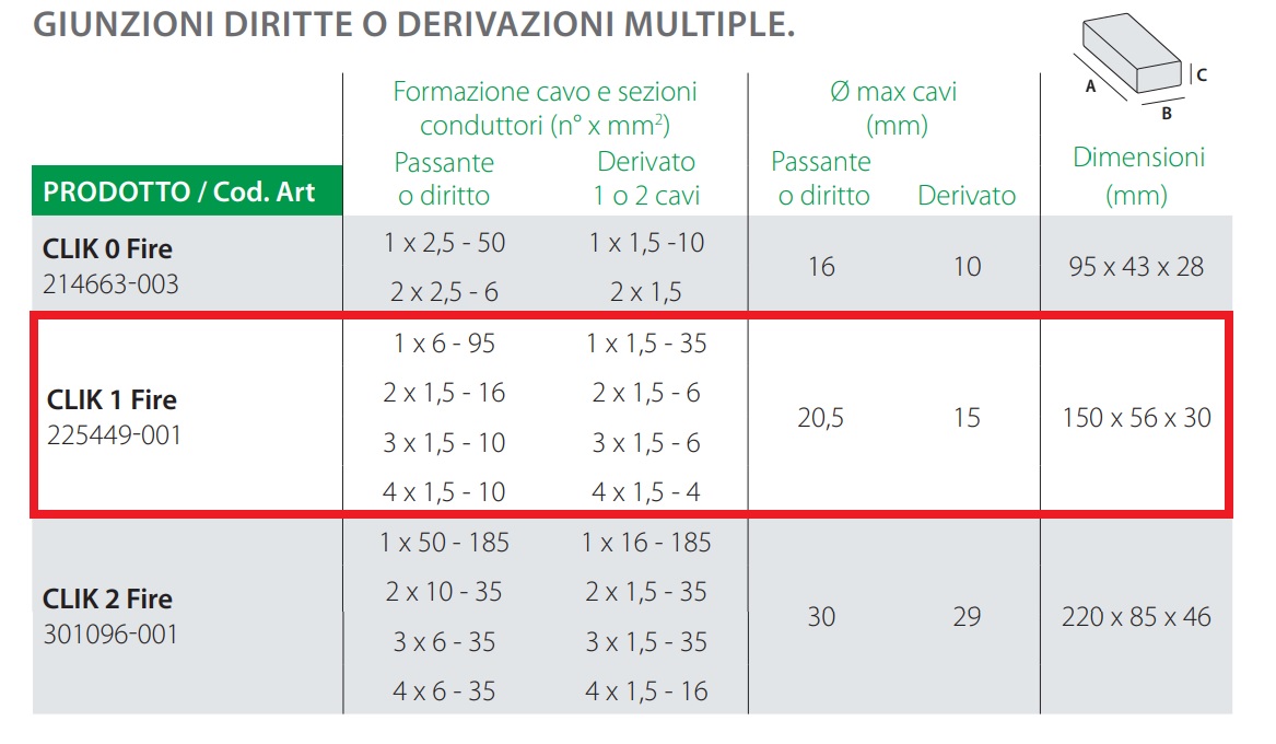 Giunzione preriempita in gel, diritta, per cavi estrusi 0,6/1 kV multipolari fino a 4 anime a connessione libera.