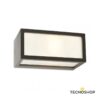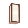 Applique da parete per esterni IP54, corpo in pressofusione di alluminio, verniciato a polveri, disponibile nelle varianti colore grigio scuro o ruggine, diffusore in policarbonato opale.