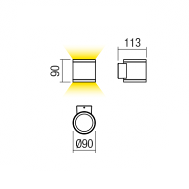 - Dimensioni: diametro: 90 mm, altezza: 90 mm, distanza dalla parete: 113 mm