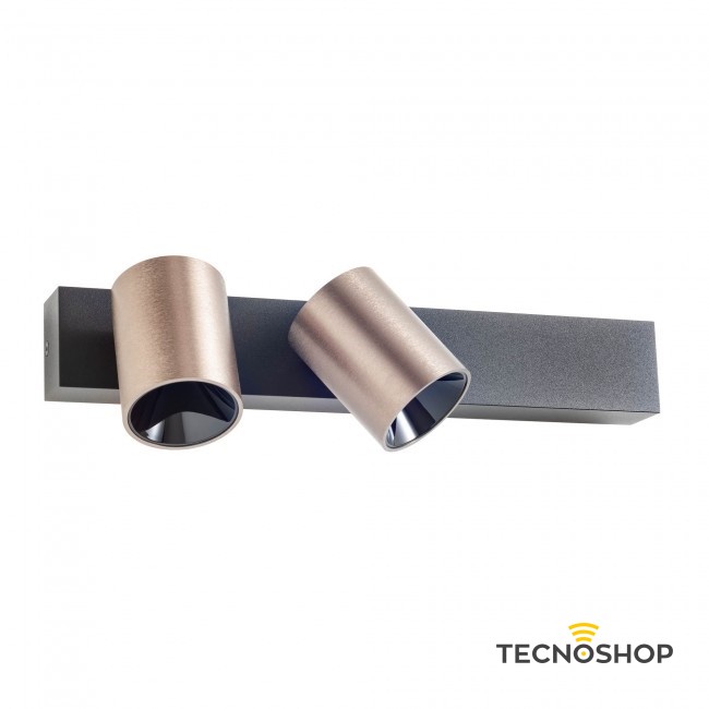 Applique per interni modello Takto dotata di LED COB, struttura in estruso di alluminio verniciato nero opaco e silver coffee, diffusore in policarbonato policarbonato satinato.