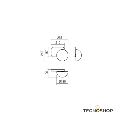 - Dimensioni: Lunghezza: 265 mm, Diametro: 180 mm, Altezza: 215 mm, Distanza dal muro: 120 mm