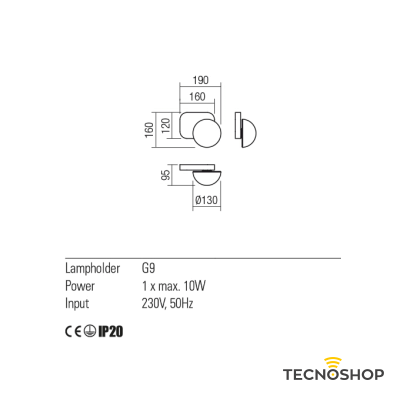- Potenza massima : 1 x 10W LED (non incl.)