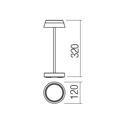 Lampada da tavolo per esterni, equipaggiata con LED SMD, interruttore ON/OFF, dimmer da 100% – 5%, con memoria dell’intensità luminosa e temperatura colore, possibilità di cambiare la temperatura colore da 2700K a 3000K.